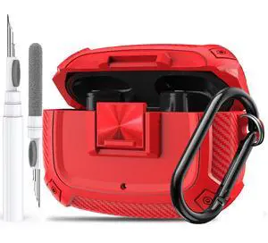 [Upgrade Secure Lock] Case Cover with Cleaner Kit, Clear TPU Shockproof Protective Cover Compatible with Charging Case with Carabiner-Clear Red