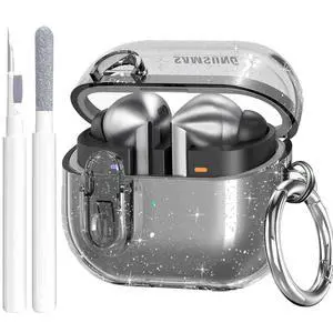 Compatible with Galaxy Bud 3 Pro Case/Buds3/Buds 3 FE Case Clear Lock Clip with Cleaner Kit, Transparent TPU Protective Cover Men Women with Carabiner, Glitter Black