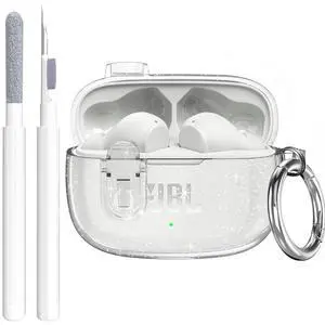 [Upgrade Secure Lock] for Case Cover with Cleaner Kit, Clear TPU Shockproof Protective Cover with Charging Case with Carabiner-Clear Grey
