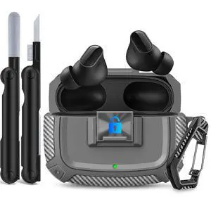 [Upgrade Secure Lock] Case Cover, Carbon Fiber Shockproof Protective Cover with Cleaner Kit & Carabiner (Grey)