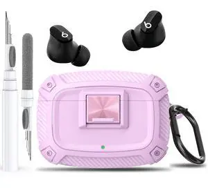 for Powerbeats Pro 2 2025 Case Cover with Cleaner Kit, Clear TPU Shockproof Protective Cover with Powerbeats Pro 2 Charging Case with Carabiner-Clear Purple