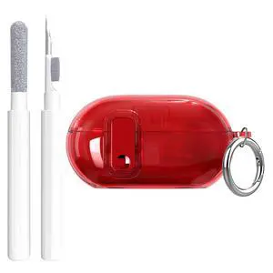 Clear Case with Secure Lock 2024, Shockproof Soft Transparent TPU Cover with Keychain and Cleaning Pen for Girl Men Women - Red