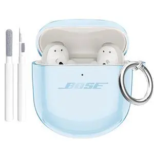 for QuietComfort Earbuds II 2022/QuietComfort Ultra 2023 Case Clear, Full Protective Soft Transparent TPU Cover for QC 2 Earbuds with Carabiner and Cleaning Pen-Clear
