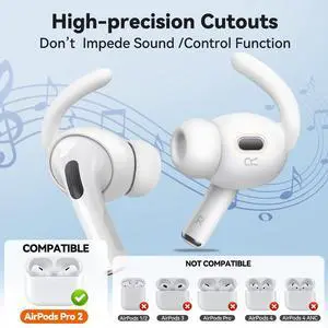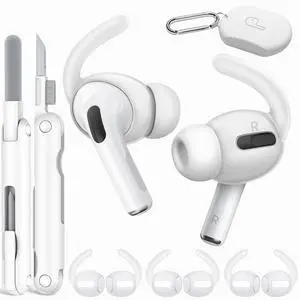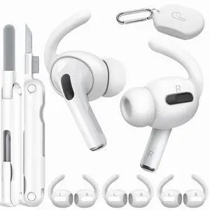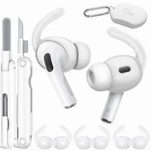 Ear Tips Anti-Slip Sport Ear Hooks Soft Silicone Ear Grips Compatible with for Men Women with Cleaning Pen Kit and Carabiner (White)