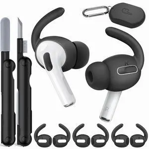 4 Pairs Ear Hooks, Silicone Anti-Slip Ear Hook with Storage Pouch, Cleaning Kit, Carabiner