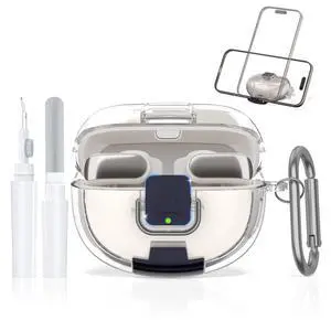 Ultra Open Earbuds Case with Secure Lock & Phone Stand, Soft TPU Shockproof Protective Clear Case for Open Ear Earbuds Accessories with Cleaning Pen & Keychain (Clear)