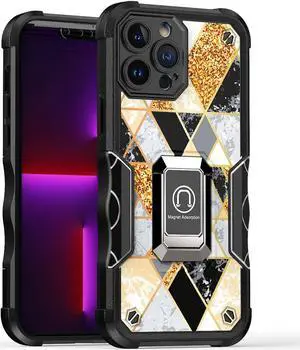 Military Grade Shockproof Hybrid Armor Case with Ring Grip for iPhone 14 Pro - Marble Gold