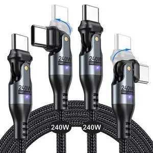 240W USB C to USB C Cable 6ft(2 Pack), USBC to USBC Dual Head 180° Rotation/C to C Cable/High Speed USB C Cable/USB C Fast Charging Cable for Phone 16/15/Ma-Book/Pad Series, Samsung Galaxy Series
