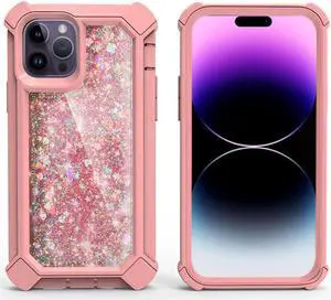 Military Grade Quicksand Glitter Waterfall Hybrid Case for iPhone 14 Pro - Pink