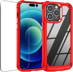 Tough Shield Snap-on Transparent Case and Tempered Glass Screen Protector for iPhone 14 Pro - Red
