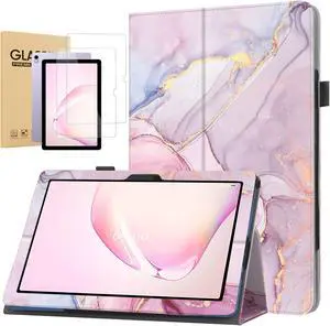 Case for ONN 10.1'' (2024 Model) with Screen Protector - Lightweight Folio Stand Cover Support Auto Wake/Sleep PU Leather Case with 2PCS Tempered Glass for Onn 10.1 Tablet (Gen 4) 2024 (Pink Marble)
