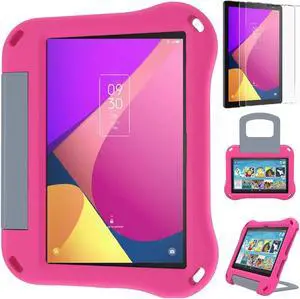 anicestore TCL Tab 8 LE Case with Glass Screen Protector - Kids EVA Cover with Stand Handle and 2 Pack Tempered Glass for TCL Tab 8 WiFi/ TCL Tab 8V/ TCL Tab 8 Plus/ TCL Tab 8 SE Tablet 8 Inch (Pink)