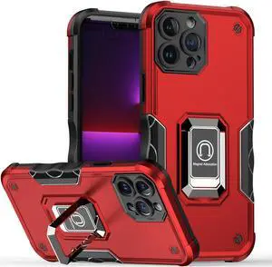 Military Grade Shockproof Hybrid Armor Case with Ring Grip for iPhone 14 Pro - Red
