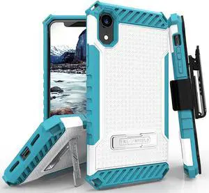 White/Turquoise Rugged Case Cover + Belt Clip Holster for Apple iPhone XR 6.1"