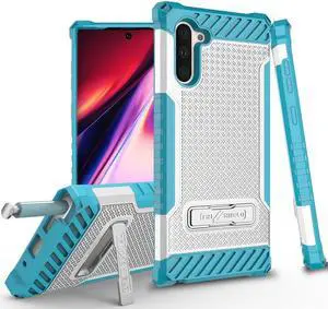 White Turquoise Rugged Case Cover Kickstand Lanyard for Samsung Galaxy Note 10