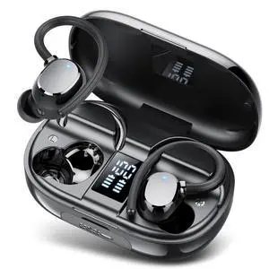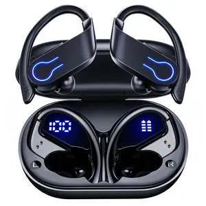 Bluetooth Headphones with Wireless Charging, Wireless Earbuds 80Hrs Playback Sport Ear Buds with Earhook LED Display Charging Case IPX7 Waterproof Earbud Deep Bass Running Earphones for iOS Android