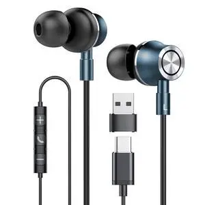 USB C Wired Earbuds, in Ear Earphones for Laptop PC with Microphone, Magnetic Noise Isolation Headset Compatible for iPhone 16 15 Pro Max Plus iPad Pro Samsung MacBook