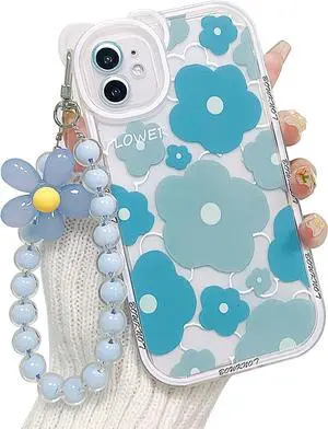 NITITOP Compatible for iPhone 11 Case Clear Floral Bear Camera Lens Case with Lovely Flower Bracelet Chain for Women Girls, Soft TPU Shockproof Protective-Blue