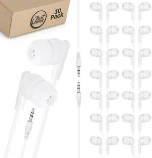 Pearl White Bulk Earbuds 30 Pack Wired Earphones 3.5mm Jack | Disposable Headphones for Classroom, Kids, Home & Family | Ear Buds Bulk