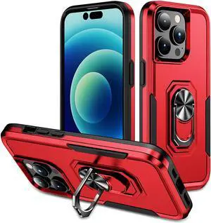 Military Grade TUFF Hybrid Case with Ring Grip for iPhone 14 Pro - Red