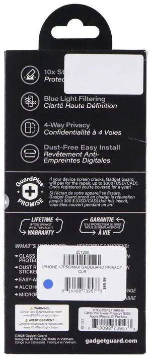 Gadget Guard Glass Pro Privacy Screen Protector for iPhone 17 Pro Max/16 Pro Max