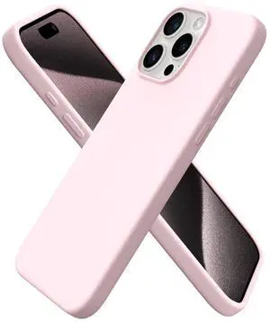 JAYSUING Compatible with iPhone 15 Pro Max Case 6.7", Slim Liquid Silicone 3 Layers Soft Gel Rubber Shockproof Protective Phone Case with Anti-Scratch Microfiber Lining-Chalk Pink