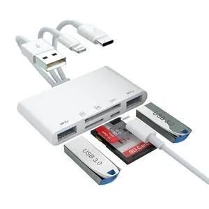 [Apple MFi Certified] 5-in-1 iPhone Memory Card Reader, USB OTG Adapter & SD/TF Card Camera Viewer for iPhone/iPad/PC/Android/Camera/USB C & A Devices, Supports SD/Micro SD/SDHC/SDXC/MMC Plug and Play