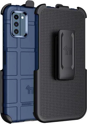 Navy Blue Matte Rugged Case Cover Belt Clip Holster for Motorola Edge Plus 2023