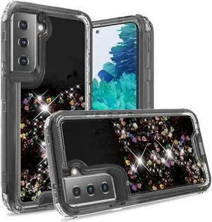 Atomic Quicksand Glitter Waterfall Hybrid Case for Samsung Galaxy S21 Plus 5G - Black