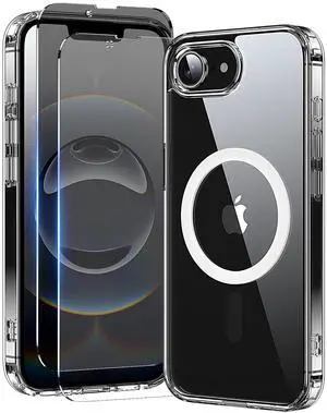 3 in 1 for iPhone 16E Case Clear/iPhone 17E Case, Not Yellowing, Screen Protector*2, Military-Grade Protection for iPhone 16e & 17e Case 6.1 inch Clear