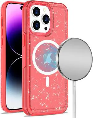 MagSafe Compatible Stardust Glitter Case for iPhone 14 Pro Max - Red