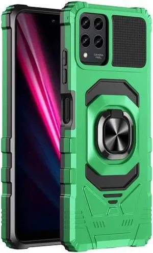 for T-Mobile REVVL 7 5G Phone Case with Tempered Glass Screen Protector,Military Grade Heavy Duty Shockproof Protective Cover,with Ring Kickstand for REVVL 7 (Green)