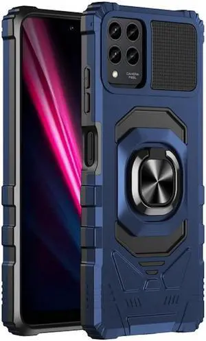 TYJKeJi Case with Card Holder Impact Resistant Ring Kickstand Shockproof Phone Cover Phone Case For T-Mobile REVVL 7 5G For TMobile Revvl 7 5G (Blue)