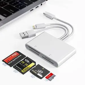 USB C & Lighting to SD Card Reader for iPhone/iPad/Android, 7-in-1 Memory Card Adapter Supporting SD/MicroSD/CF/MS/XD Cards, USB OTG Camera Adapter with Portable Design, Fast Charging & Plug and Play