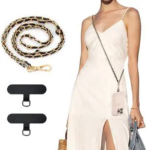 Universal Phone Lanyard Metal Cell Phone Chain Anti-Theft Crossbody Strap for iPhone 17 16 Series and Most Smartphones Cell Phone Neck Holder for Women Gold & Black