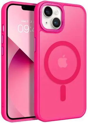 JAYSUING Magnetic for iPhone 13 Case & iPhone 14 Case [Compatible with Magsafe] Translucent Matte Phone Case iPhone 13/14 Slim Thin Shockproof Women Men Protective Cover Cases, Hot Pink
