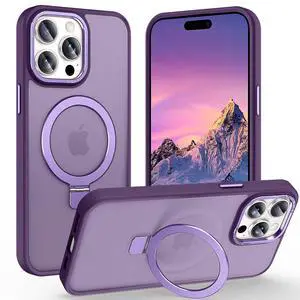 JAYSUING Magnetic for iPhone 15 Pro Max Case with Ring Stand, [10 FT Drop Protection] [Velvety Touch] Slim Translucent Matte Back Shockproof Phone Case for iPhone 15 Pro Max 6.7'', Dark Purple