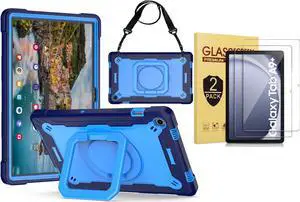 Case for Samsung Galaxy Tab A9+/ A9 Plus 11 inch with Tempered Glass Screen Protector - Shoulder Strap Handle Grip Rotating Stand Cover for Galaxy Tab A9 Plus 5G 11'' (SM-X210/X216/X218) - Blue/Blue