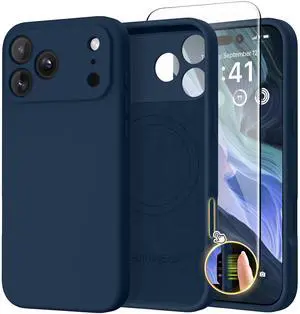 Magnetic for iPhone 17 Pro Max Case, Compatible with MagSafe, [Full Camera Protection] [Screen Protector], Silicone Shockproof Phone Cover with Anti-Scratch Microfiber Lining, Ocean Blue