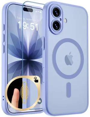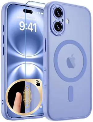 Magnetic for iPhone 16 Case,[Compatible with MagSafe][Military Grade Drop Protection] Anti-Fingerprint Translucent Matte Shockproof Protective Case for iPhone 16 Phone Case 6.1",Black