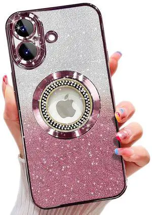 for iPhone 15 Magnetic Case Compatible with MagSafe,Full Protection Slim Shockproof Anti-Scratch Glitter Case with Camera Lens Protector Logo View Dust-Proof Net for Women Blue