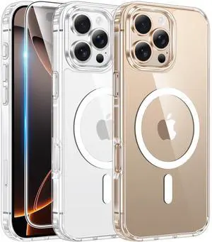 3 in 1 for iPhone 16E Case Clear/iPhone 17E Case, Not Yellowing, Screen Protector*2, Military-Grade Protection for iPhone 16e & 17e Case 6.1 inch Clear