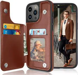 Tekcoo Wallet Case Compatible For iPhone 15 Pro | 2023 | 6.1 inch | Minimalist Luxury PU Leather ID Cash Credit Card Holder Slots Magnetic Closure Kickstand Folio Flip Slim Protective Cover - Brown