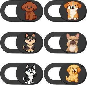 6Pcs 6 Styles Cute Camera Cover Slide Laptop Camera Cover Dog Design Privacy Guard Webcam Protector for Laptop Desktop Computer Tablet Phone Notebook Mini PC Accessories Home Office Use