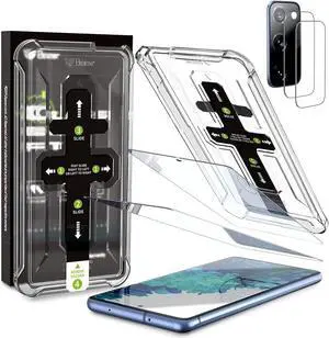 [2+2 Pack] Galaxy S20FE Screen Protector 9H Tempered Glass + 2 Pack Camera Lens Protector Auto-Alignment Frame Easy Installation Bubble Free