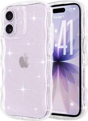 Cute Case for iPhone 15 6.1-Inch, Wave Frame Curly Shape Shockproof Phone Cover for Women and Girls, Clear Hard PC Back (Green)
