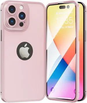 360 Full Protection Aluminum Bumper Cover with Integrated Tempered Glass Screen Protector for iPhone 14 Pro - Rose Gold