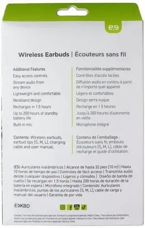 PureGear PureBoom Sport Wireless Earbuds with Built-in Mic - Black