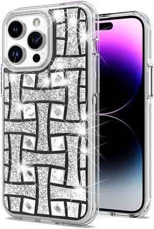 Diamond Encrusted Hybrid Case for iPhone 15 Pro Max - Woven Black