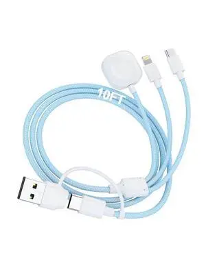 Travel Apple Watch Charger 3 in 2 USB C Long Multi Charging Cable for iwatch iPhone Nylon Braided USB A/C to Lightning Type C Multi Cord Long iWatch Magnetic Wireless Charger 10FT Travel Essentials